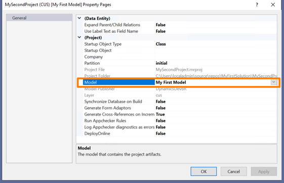 - b. Make this my default model for new projects – Com essa opção habilitada, os novos projetos e solutions criados irão referenciar a nova model como padrão.